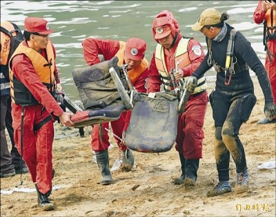 復興空難進入第八天,南湖大橋下發現兩位罹難者及飛機座椅。(記者王敏為攝)